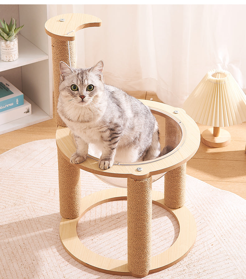 Trasforma il momento dedicato al gioco del tuo gatto con il doppio tiragraffi, un innovativa struttura a doppia funzione che unisce perfettamente un albero per arrampicarsi con una comoda capsula spaziale.