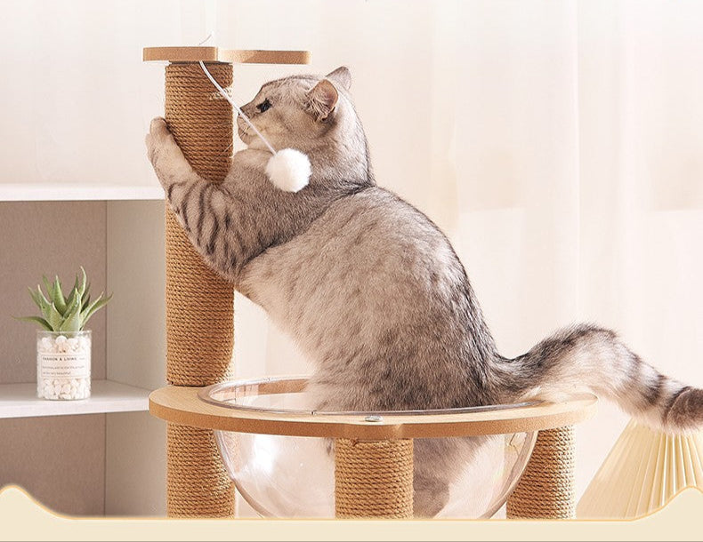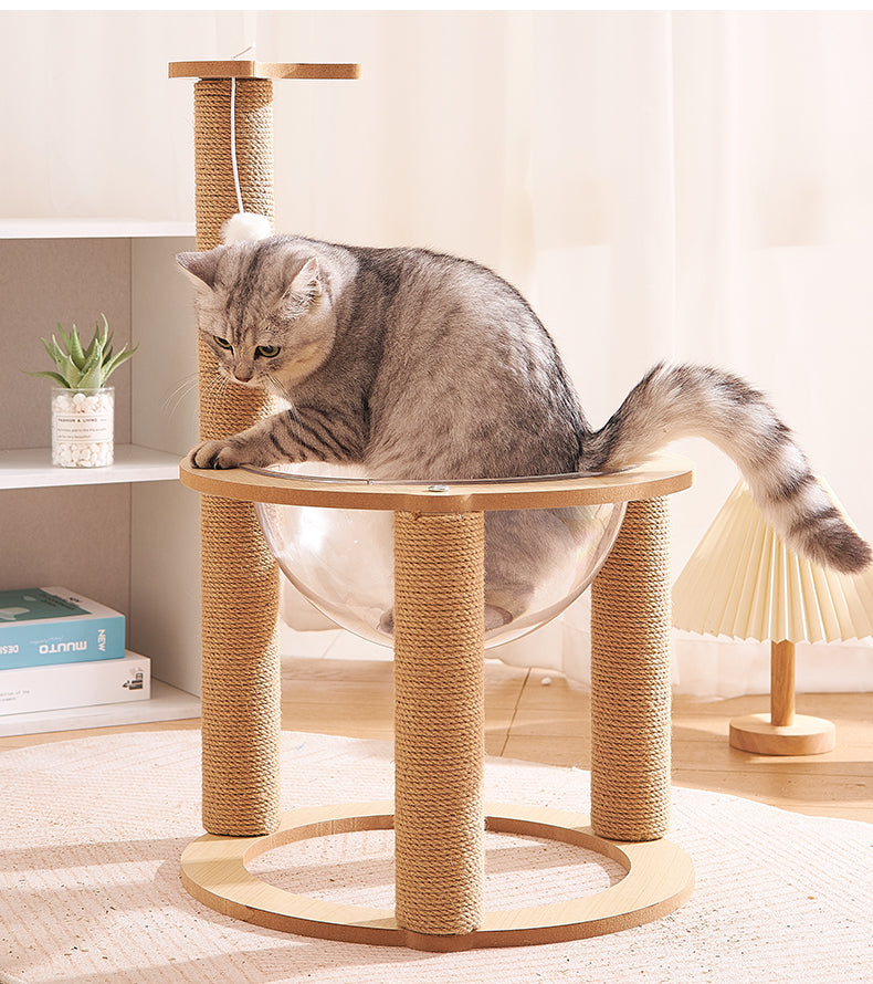 Tiragraffi doppio per gatti con cupola trasparente