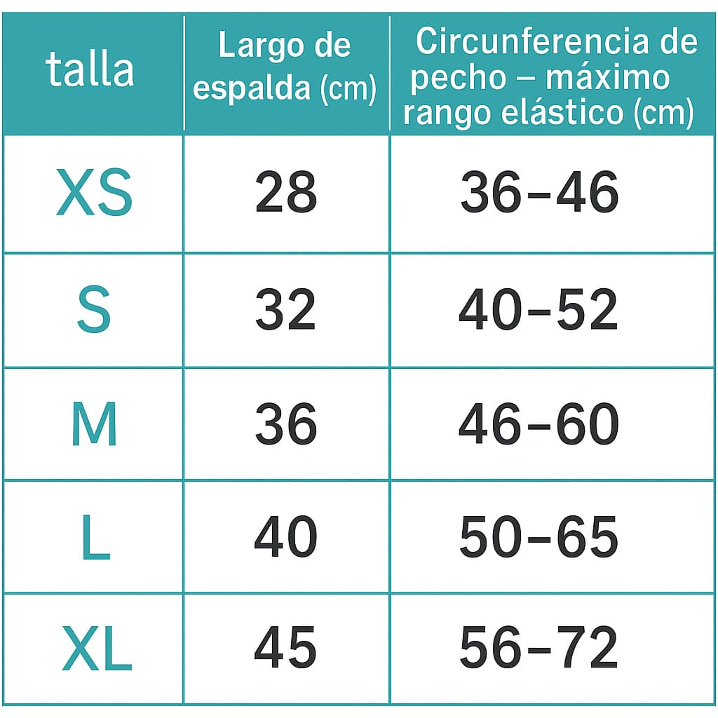 XS: Chihuahua, Yorkshire - S: Maltese, Pinscher - M: Pomerania, Shih Tzu - L: Schnauzer, Beagle - XL: Cocker Spaniel, Bulldog francese