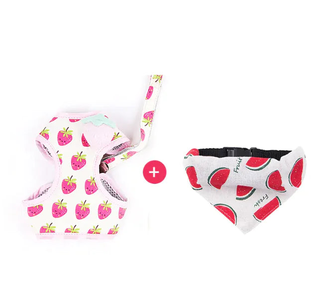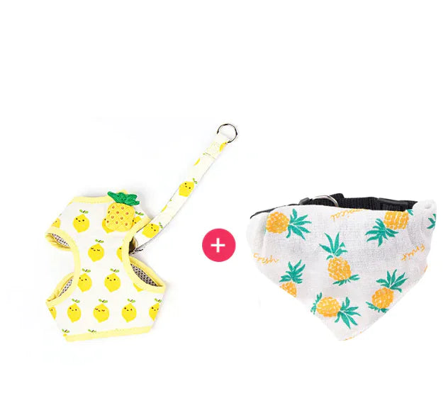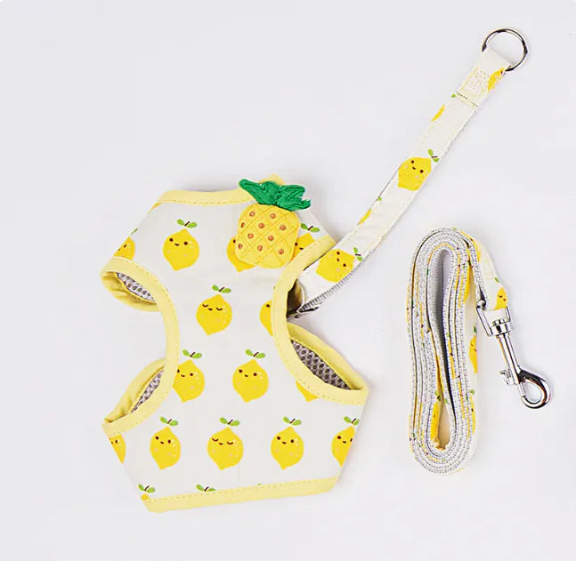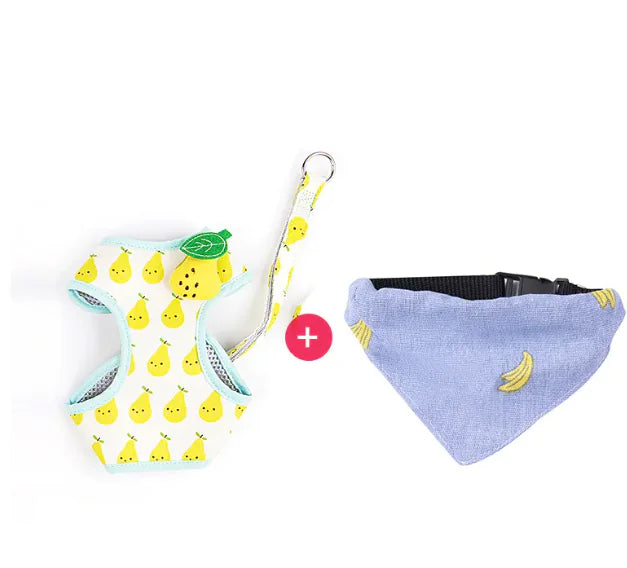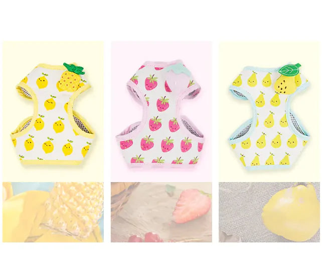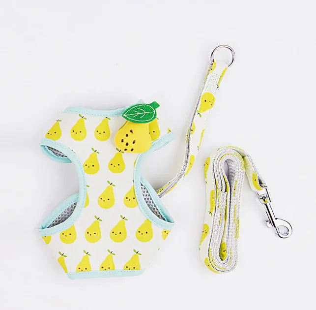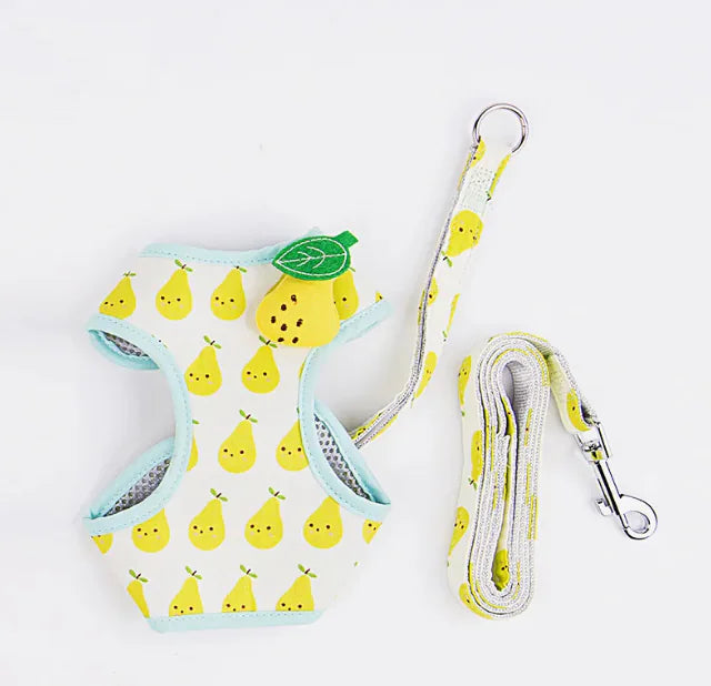 Haz que las aventuras al aire libre de tu gato sean seguras y con estilo con este adorable arnés y cuerda de tracción con temática de frutas. Hecho de nailon resistente, este arnés ajustable y antirroturas viene en diseños de pera, fresa y piña. Disponible en tres tallas para gatos de 3 a 15 kg. Cada juego incluye un arnés y una correa a juego, perfectos para paseos diarios o divertidas sesiones de fotos.