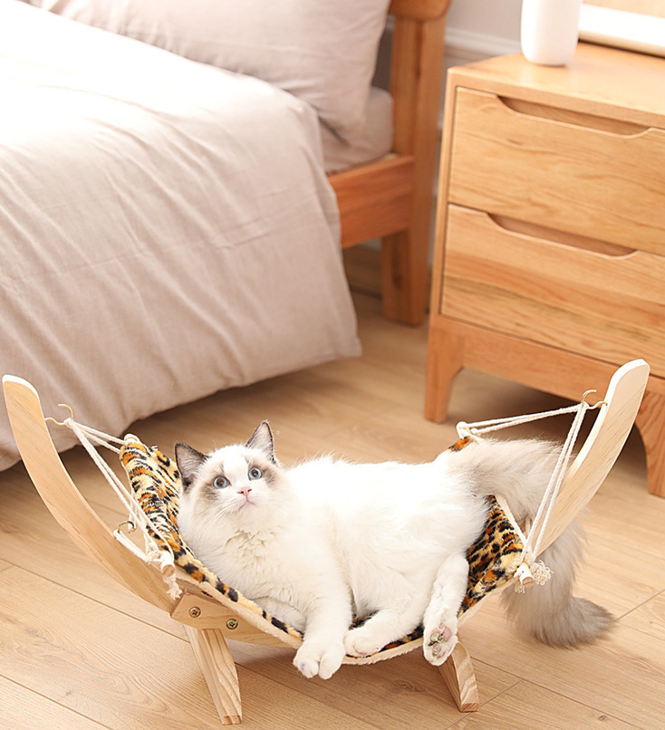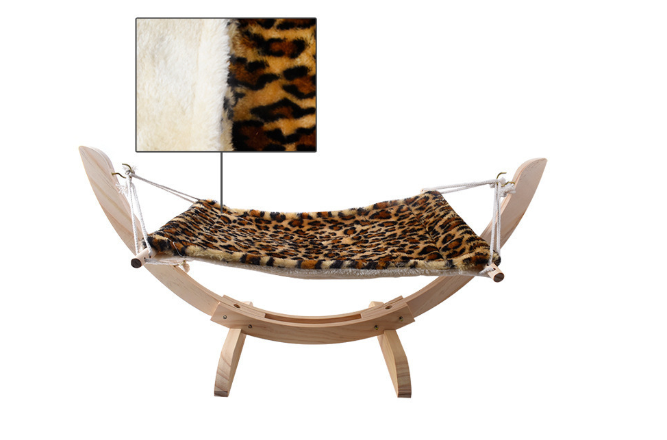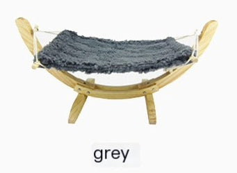 El robusto marco de madera asegura durabilidad, mientras que los materiales suaves de lona y terciopelo brindan una superficie cómoda para que tu mascota disfrute. Esta hamaca no solo añade un toque de elegancia a tu espacio, sino que también fomenta hábitos de descanso saludables para tu gato.