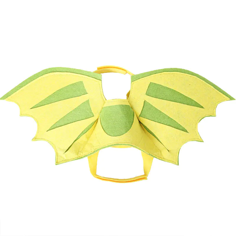 Hechas de fieltro de alta calidad, estas alas no solo son ligeras sino también duraderas. Disponibles en color verde, estas alas se adaptan a mascotas de todos los tamaños. Con dimensiones de 45 cm de alto y 185 cm de largo.
