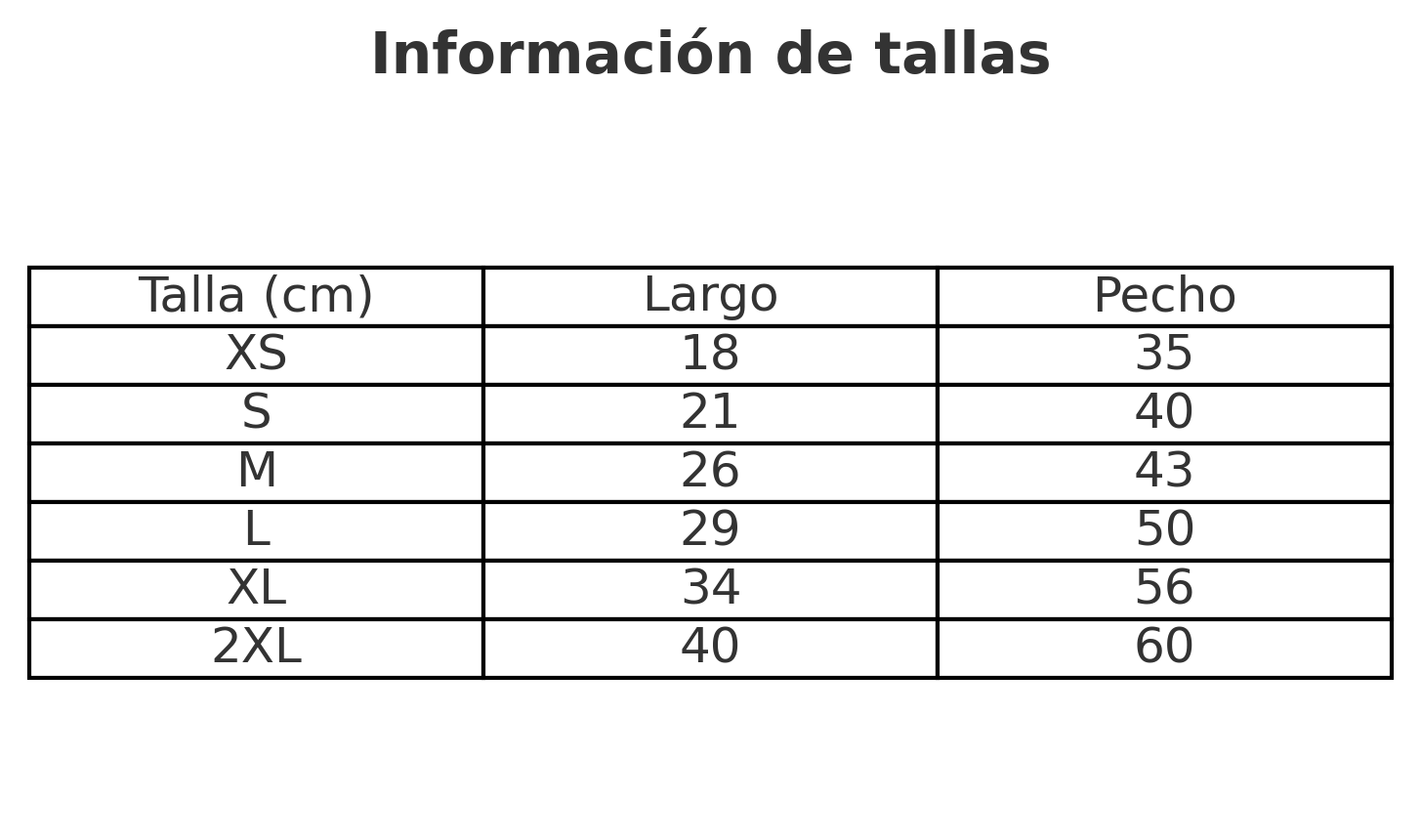 Disponibles en varias tallas (XS ,S, M, L, XL,2XL) para adaptarse a mascotas pequeñas y medianas.
