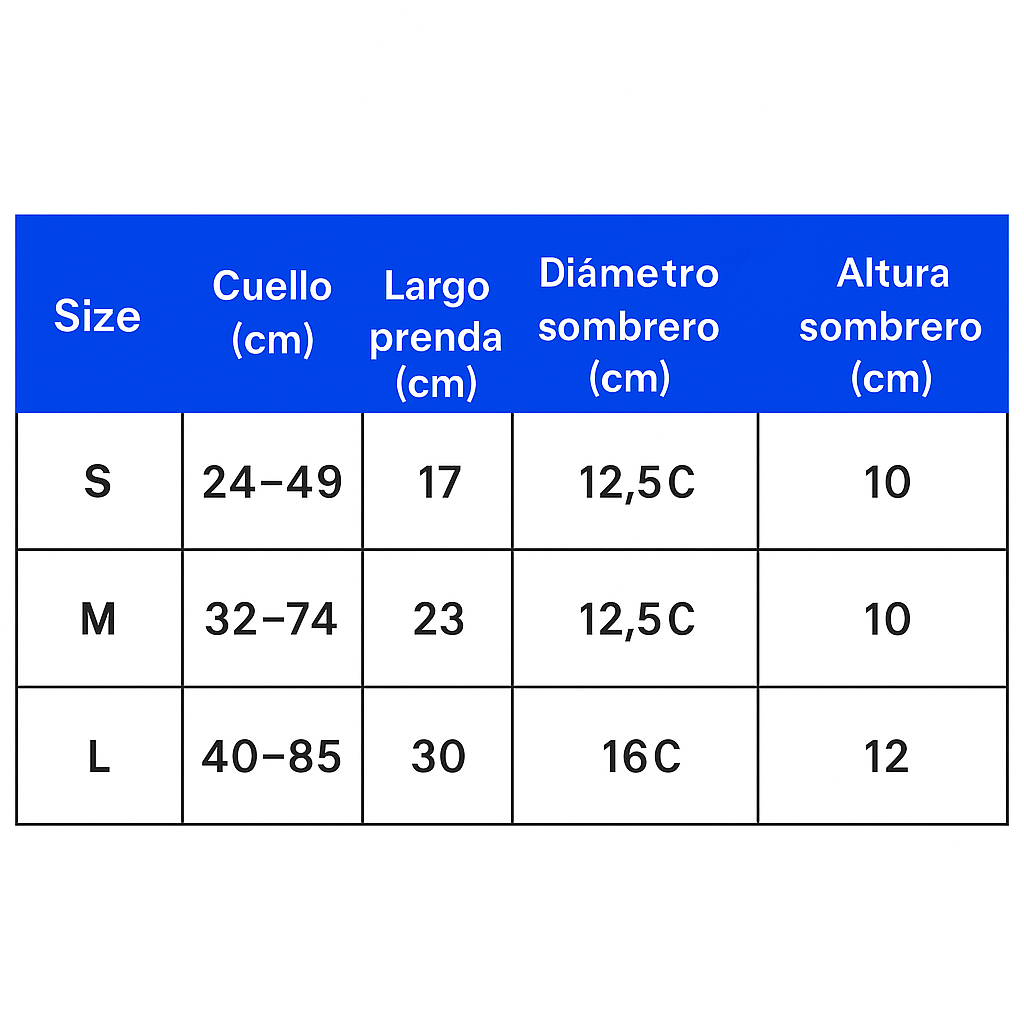 Hecho de poliéster de alta calidad, este disfraz no solo es cómodo sino también duradero, perfecto para todas las aventuras que tu mascota emprenderá. Disponible en varios tamaños - S, M y L -
