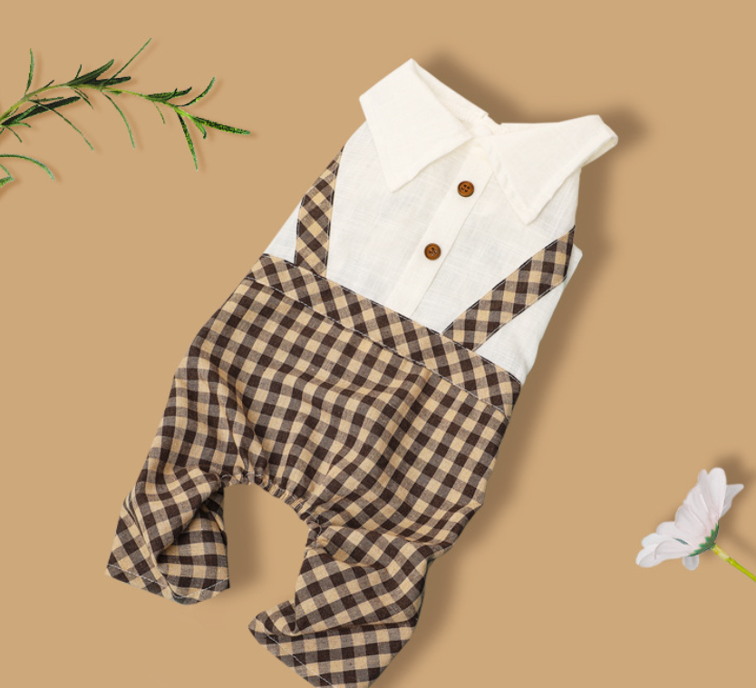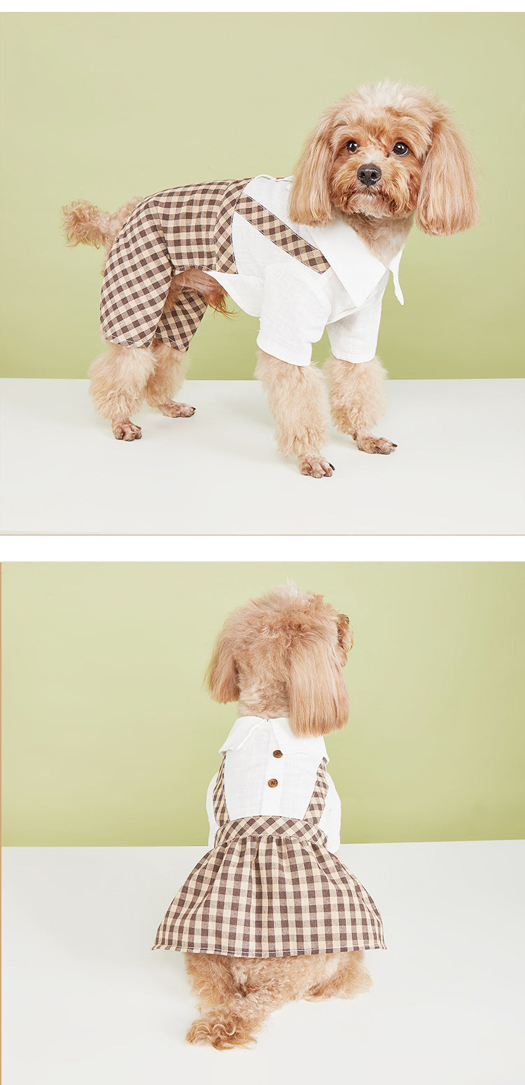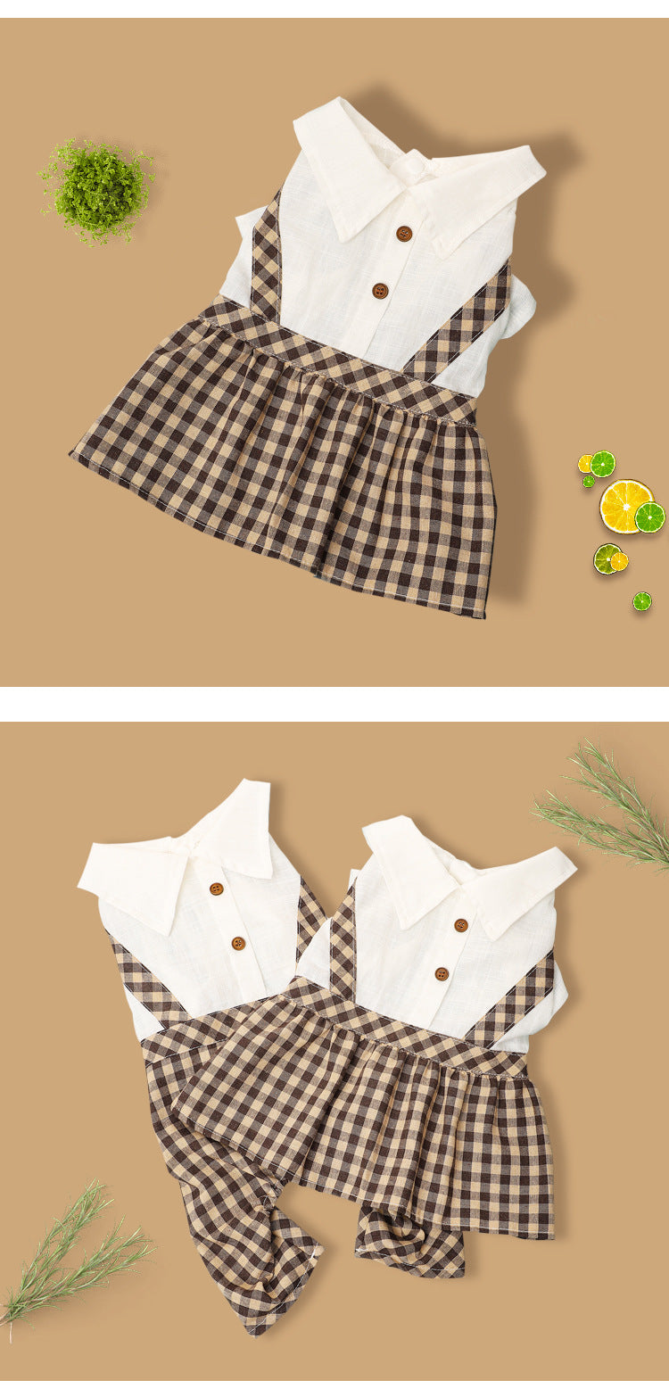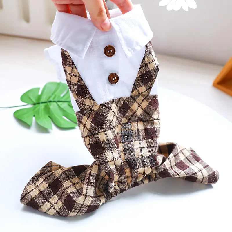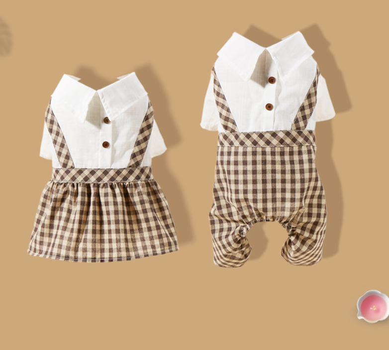 Falda y Pantalón con Tirantes a cuadros café para Perros y Gatos