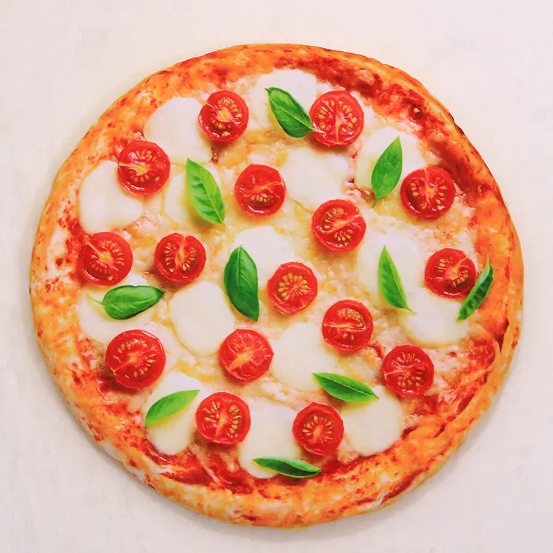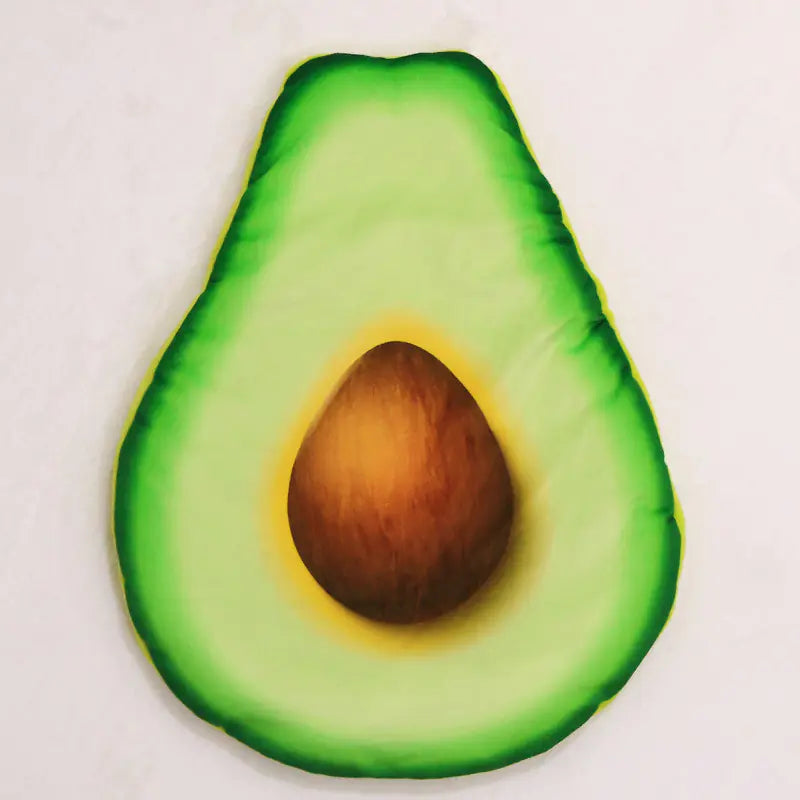Los Tapetes y La Mantas con forma de aguacate, acelga,tostada, beicon(bacon), conejo, medidas aproximadas ( S: 33cm. x 45,7cm.) -(M: 43,2cm. x 53,3cm.) -(L: 53,3cm. x 73,7cm.). Los Tapetes y las mantas con formas de huevo frito y pizza medidas aproximadas,(S: 40cm diámetro)-( M: 55cm. de diámetro) -( L: 70cm. de diámetro)